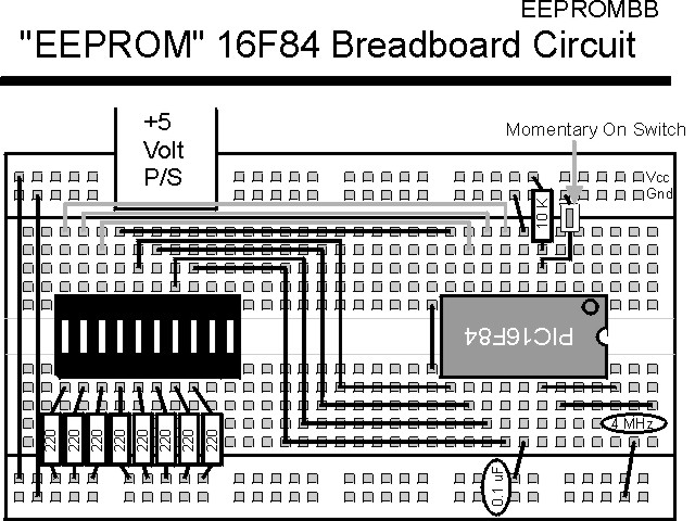 "EEPROM" ExperimentIn some applications, you will want to use the PICmicro® MCU's built in data EEPROM for storing calibration values. In order to do this, the EEPROM should be loaded with a predetermined value. In this experiment, I create an data EEPROM four byte "Check Area" along with a counter that increments each time the application resets.