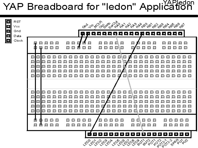Using a breadboard, the experiment is wired using the guide: