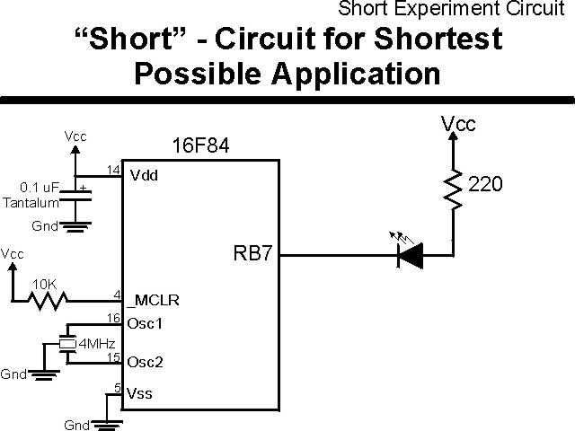 "Short" ExperimentThis is the shortest useable application that I could come up with. The application resides at the end of program memory and flashes an LED connected to RB7. The application itself could be coded as: