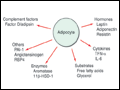 | Figure 77-3 Factors released by the adipocyte that can affect peripheral tissues. PAI, plasminogen activator inhibitor; TNF, tumor necrosis factor; RBP4, retinal binding protein 4. | |