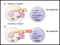 | Figure 314-4 Encounters between NK cells: potential targets and possible outcomes. The amount of activating and inhibitory receptors on the NK cells and the amount of ligands on the target cell, as well as the qualitative differences in the signals transduced, determine the extent of the NK... | |