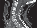 | Figure e44-36 Ligament injury after trauma Coronal CT reconstruction demonstrates abnormal asymmetry between the dens and the lateral masses of C1 indicating transverse ligament rupture. | |